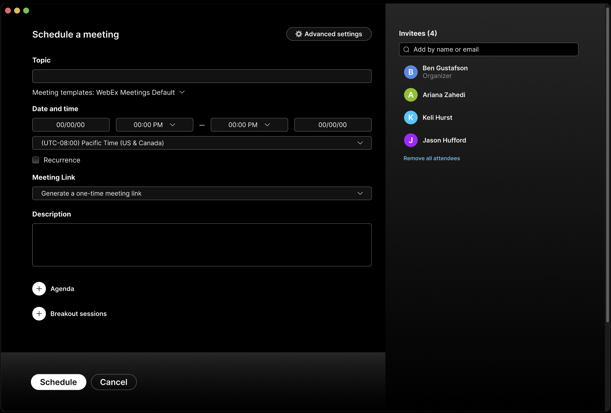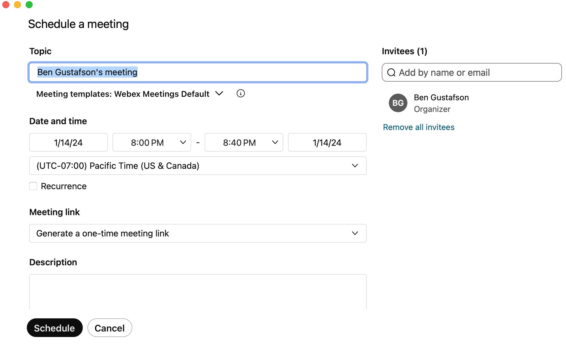 This is the current scheduling modal in Webex.