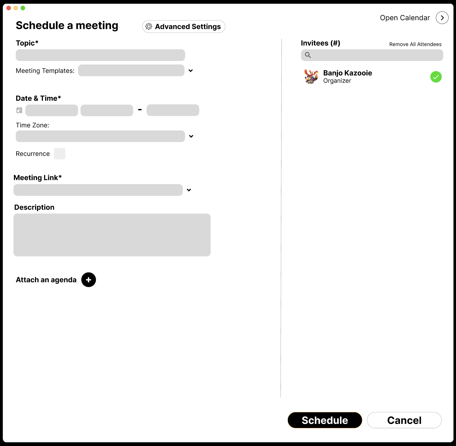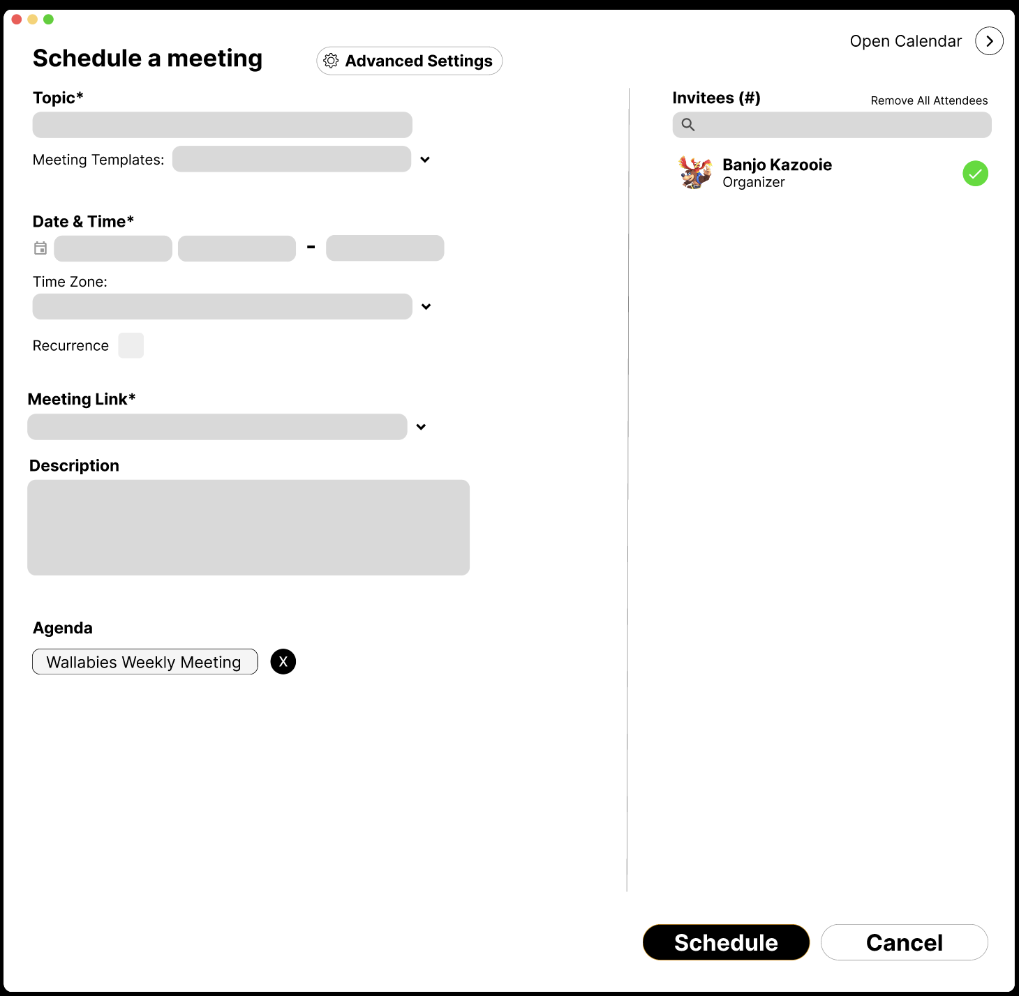 The second would be in Webex’s current scheduling modal, since users had to enter information here anyway to schedule a meeting.