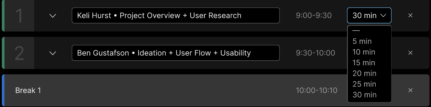 Breaks: Giving users the ability to incorporate breaks into the agenda was appreciated.