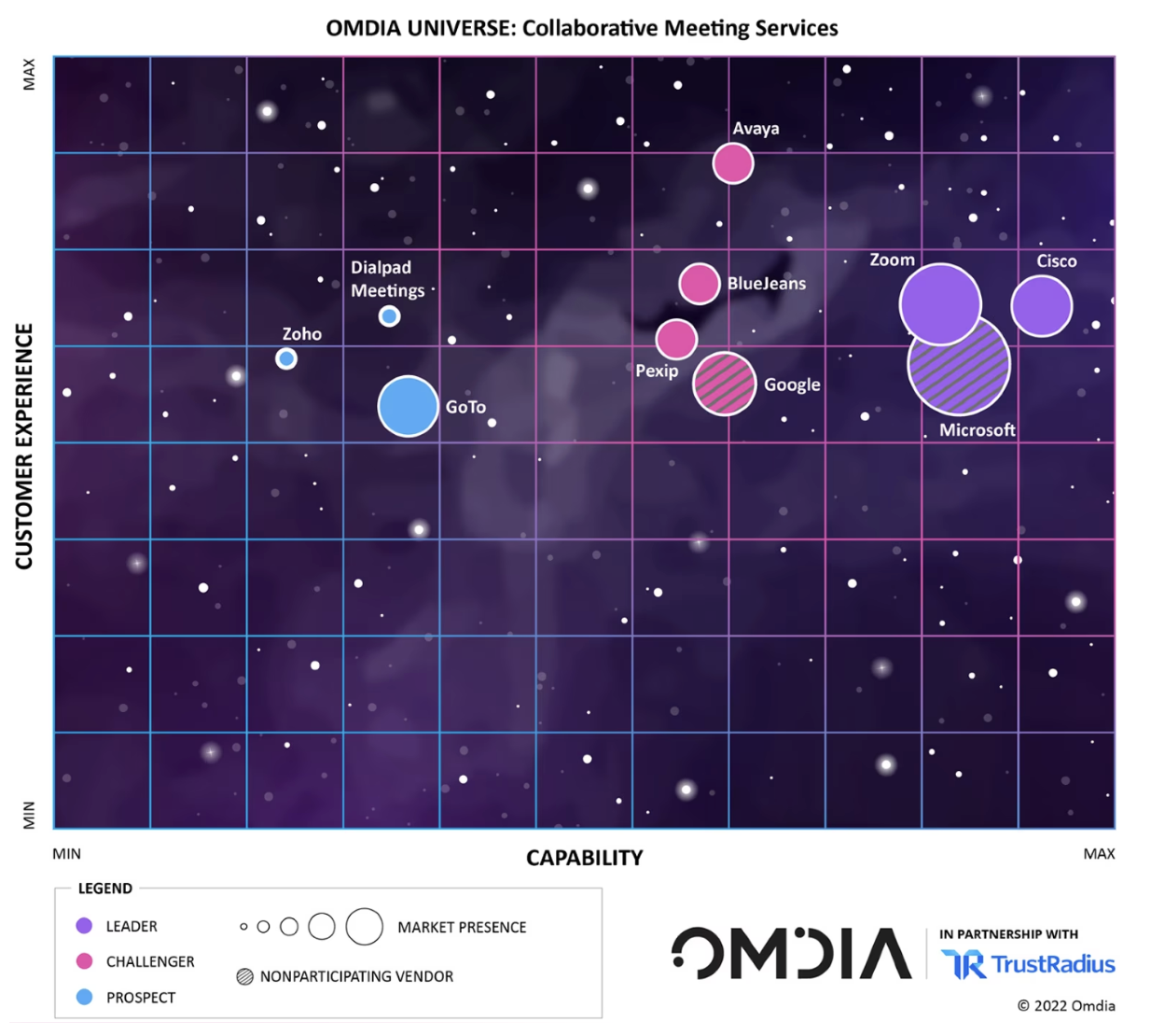 Cisco has a smaller market share percentage behind their competitors Zoom, Microsoft Teams, Google, etc.