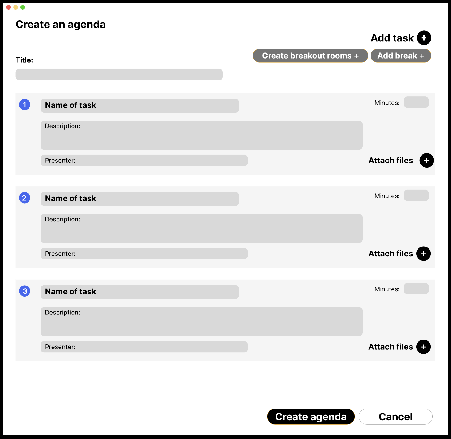 Step One: Users would begin the agenda creation by clicking “Attach an agenda“