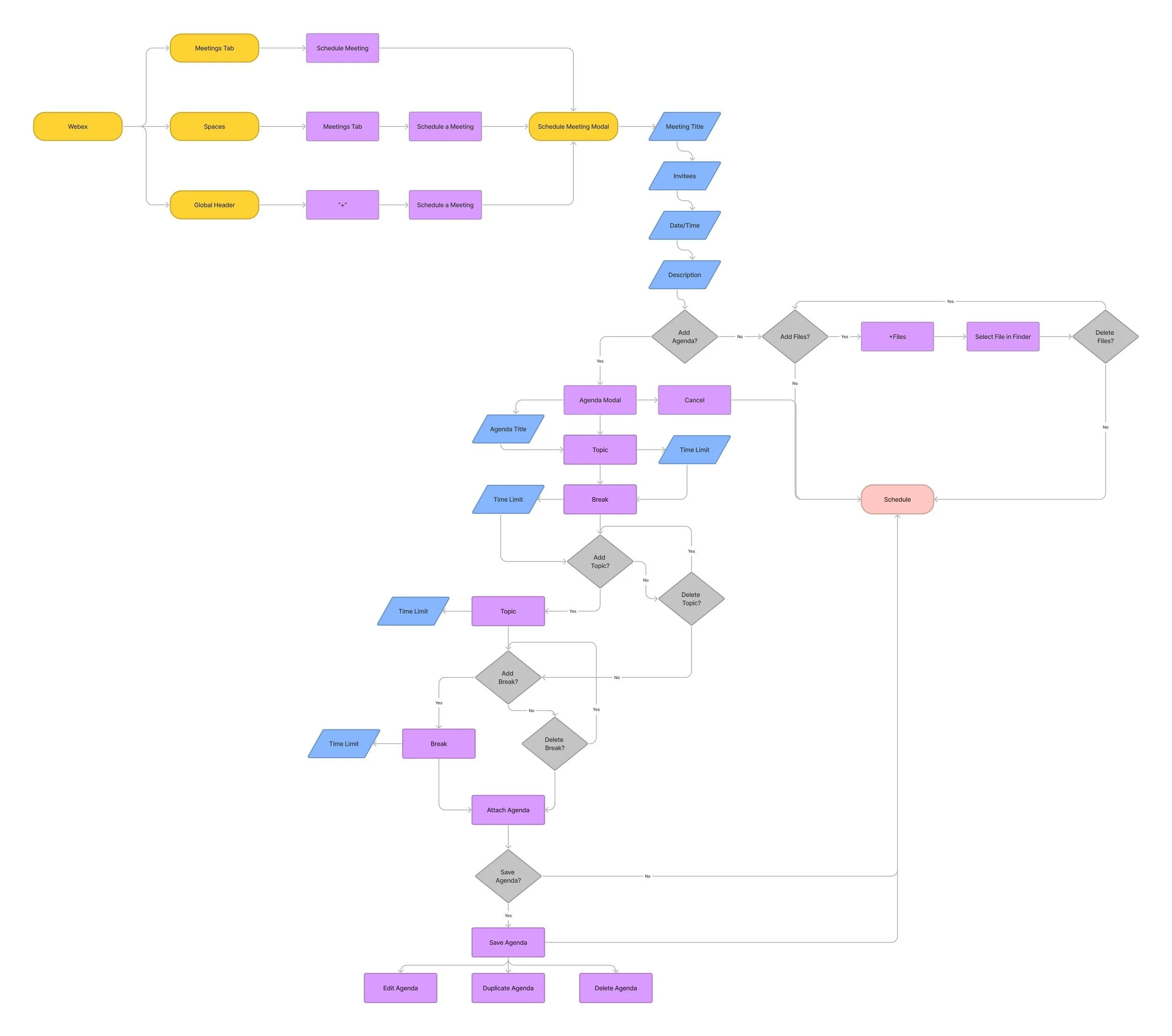 I created this user journey map to show how users would build out an agenda to attach for their meeting.